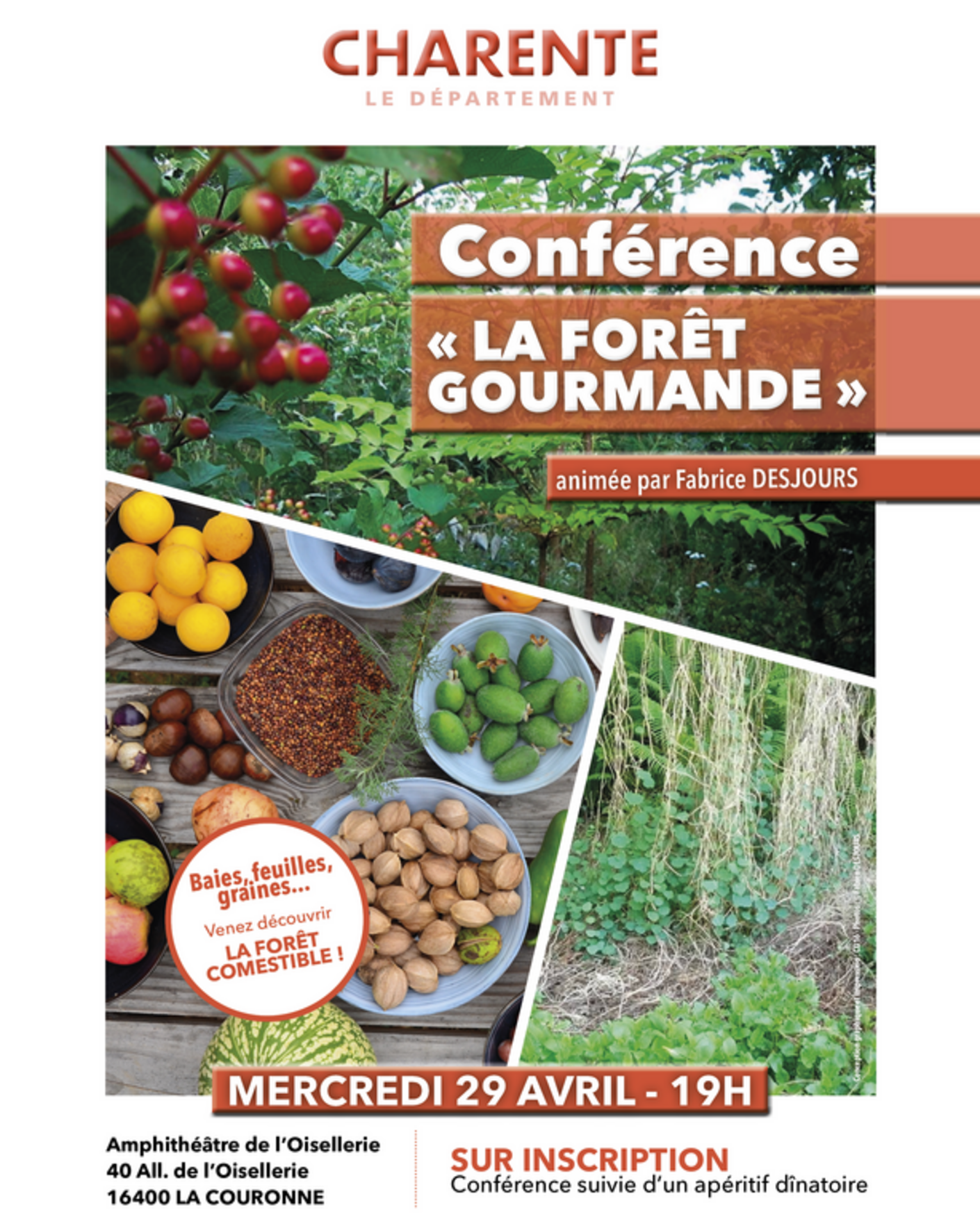 Dans ce cadre, le Département vous invite à assister à la conférence « La Forêt Gourmande », animée Fabrice Desjours, créateur du plus vieux jardin-forêt de France.