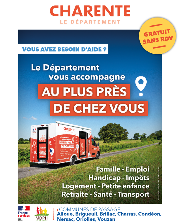 Le Département de la Charente a réuni les Centres Communaux d’Action Sociale et les associations caritatives de Charente Limousine. Cette réunion coanimée par le Centre Inter-Communal d’Action Sociale a été l’occasion d’échanger autour de l’application Soliguide, qui recense tous les services utiles aux personnes en situation de précarité, et du Bus du Département ! En présence notamment de Philippe Bouty, Président du Conseil départemental de la Charente et Jeanine Durepaire, Conseillère départementale déléguée aux personnes âgées en établissements.