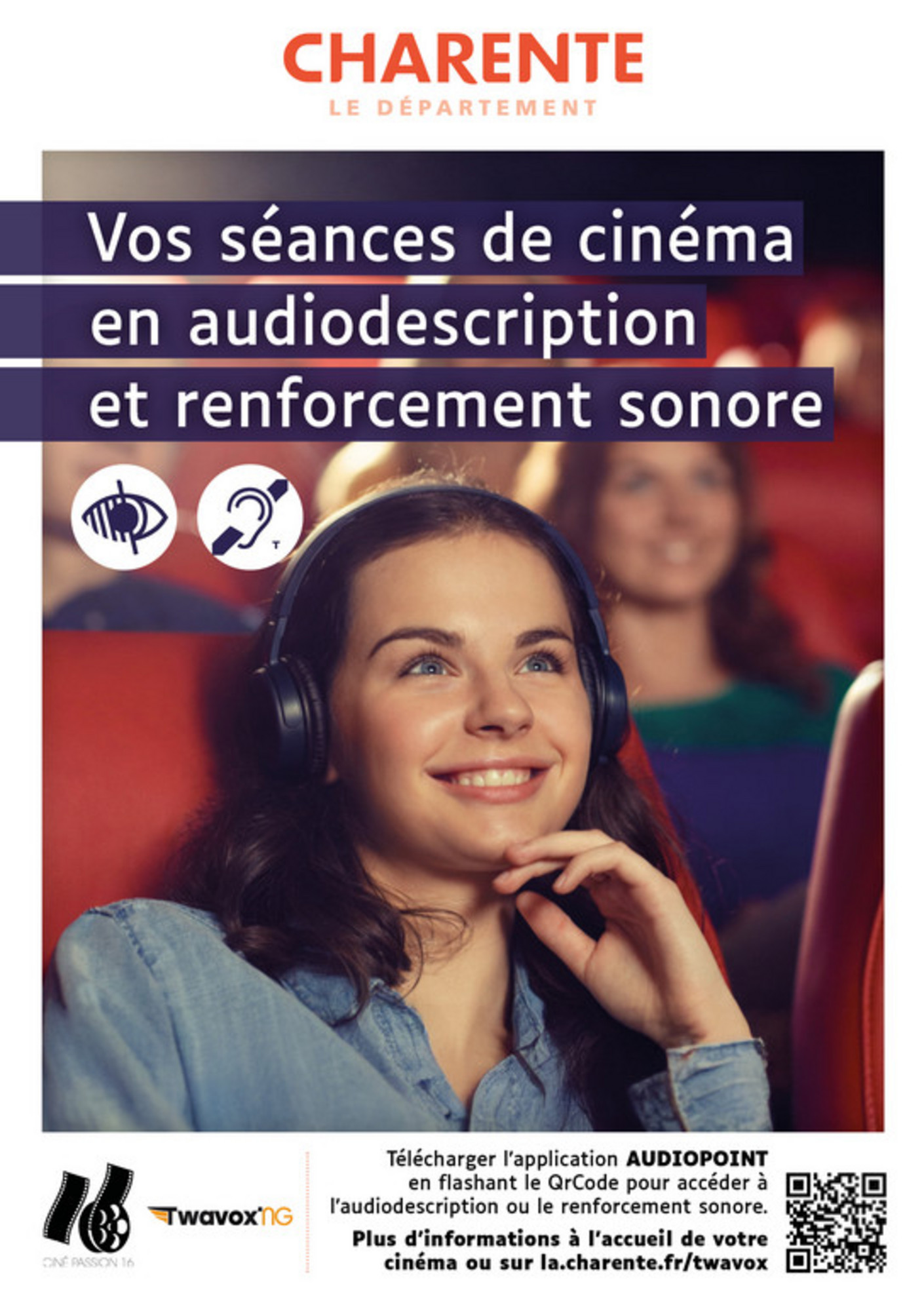 Dans le cadre de sa politique d’inclusion et d’accès à la culture pour tous, le Département de la Charente a souhaité que l’ensemble des salles de cinéma du territoire soient attentives aux besoins des personnes en situation de handicap sensoriel. À cet effet, il a soutenu l’association Ciné Passion 16, qui regroupe dix salles charentaises, dans la mise en œuvre d’un projet visant à équiper les cinémas d’un dispositif numérique innovant.