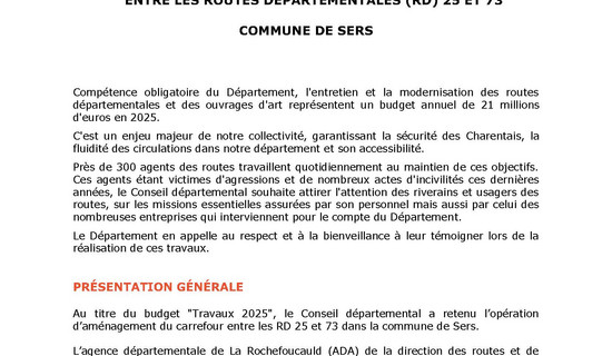 Travaux - Commune de Sers - RD 25 22/10/2025 - Routes et déplacements Compétence obligatoire du Département, l'entretien et la modernisation des routes départementales et ...